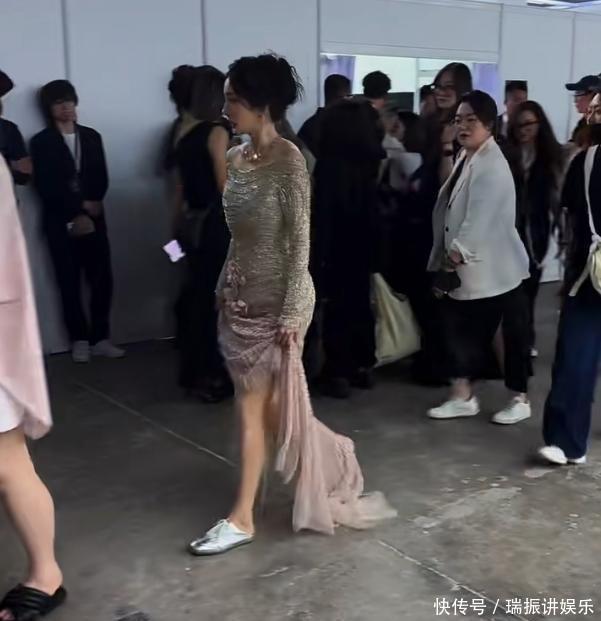 杨幂这种模样可不多见,她在镜头下总是那么淡定、慢条斯理的,每个动作都像精心设计过似的,可这么一来,反倒没了点女神范儿。她双手拎着裙摆,脚上蹬了双运动鞋,鞋还没穿利索,后跟踩着,看着有点不修边幅。