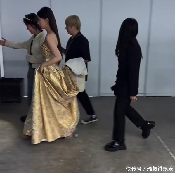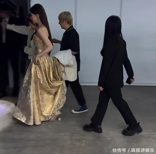 吴谨言身后的助理帮她拎着长长的裙摆,这样她走路就不会显得太窘迫了。而杨幂之前是自己拎着裙摆,结果在镜头前显得有点手忙脚乱。